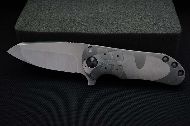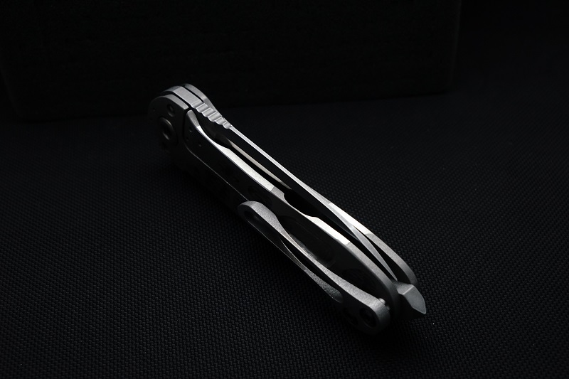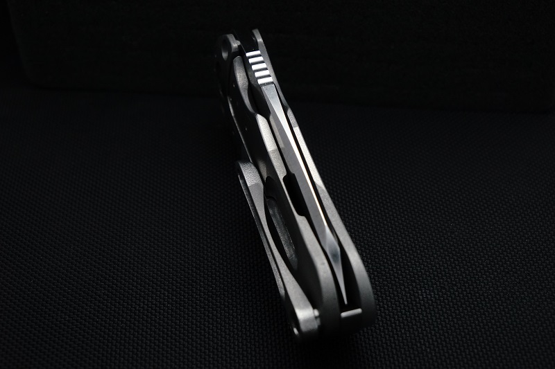 | FRAME: | Full Ti with Grey G10 Shell and Ti Bolstered Grips and Pivot Rings | ||