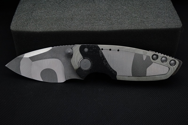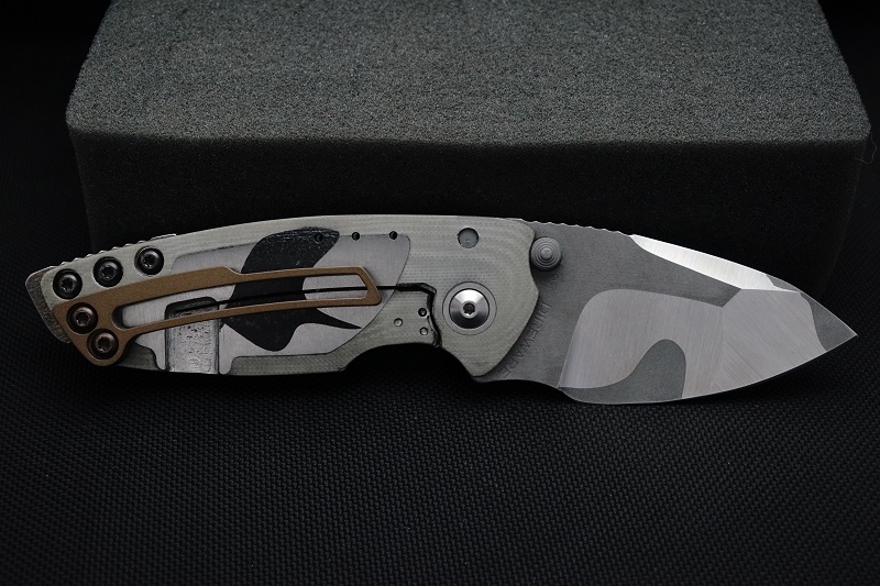 | EXTRAS: | Cerakote Frame and Blade Flats. Stainless Steel Lock Bar Insert. Hardened 440C Backspacer. Dark Hardware. Tritium Thumbstud | ||