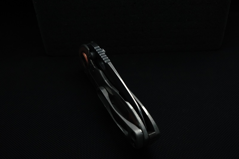 | EXTRAS: | Stainless Steel Lock Bar Insert. Copper Pivot Collars. Hardened 440C Back Spacer. Dark Hardware. | ||