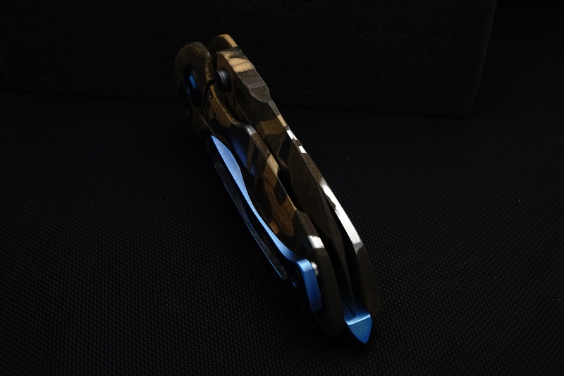 | EXTRAS: | Stainless Steel Lock Bar Insert. Titanium Extended Point Back Spacer. Titanium Clip with Bronze Phosphor Inlays. | ||